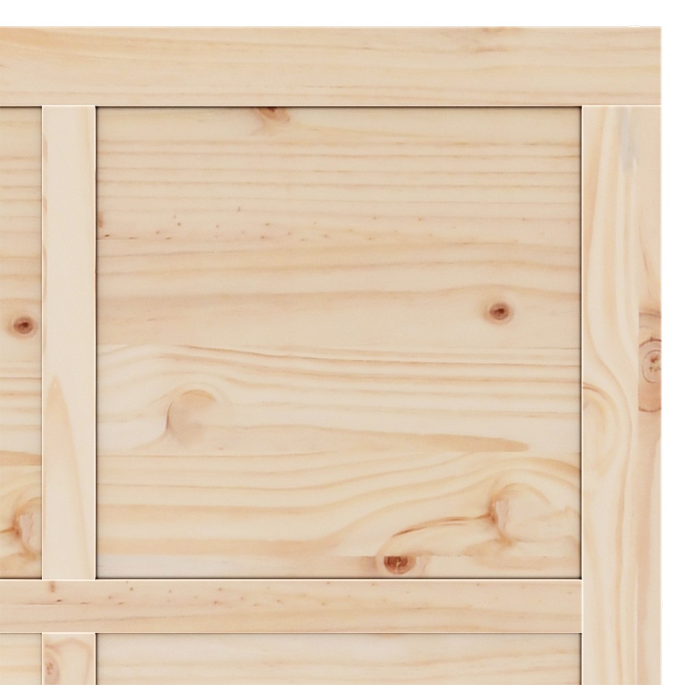 - Υλικά: Φτιαγμένη από μασίφ ξύλο πεύκου, αυτή η συρόμενη πόρτα συνδυάζει φυσική ομορφιά και αντοχή, προσφέροντας αισθητική που κρατάει. Η ζεστασιά και η υφή του ξύλου ενισχύουν τη ρουστίκ γοητεία, διασφαλίζοντας ότι η πόρτα αντέχει σε καθημερινή χρήση.
