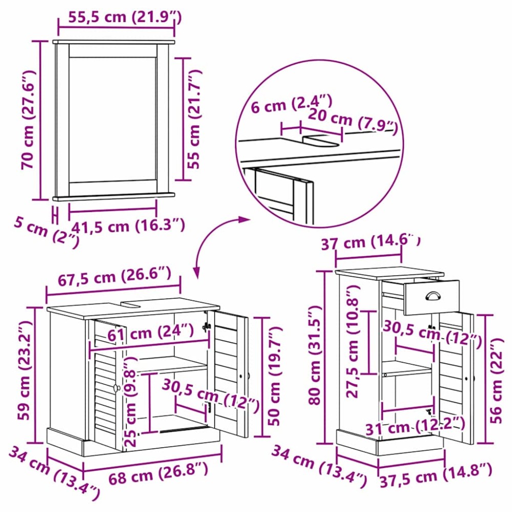 - Πρακτική χρήση: Το σετ είναι ιδανικό για εσωτερικά μπάνια, προσφέροντας άφθονο χώρο για αποθήκευση, βοηθώντας σας να οργανώσετε τα καλλυντικά και τις πετσέτες σας αποτελεσματικά. Ο πρακτικός σχεδιασμός του υποστηρίζει την αποθήκευση, κάνοντάς το ιδανικό για να διατηρήσετε το μπάνιο σας καθαρό και προσβάσιμο.