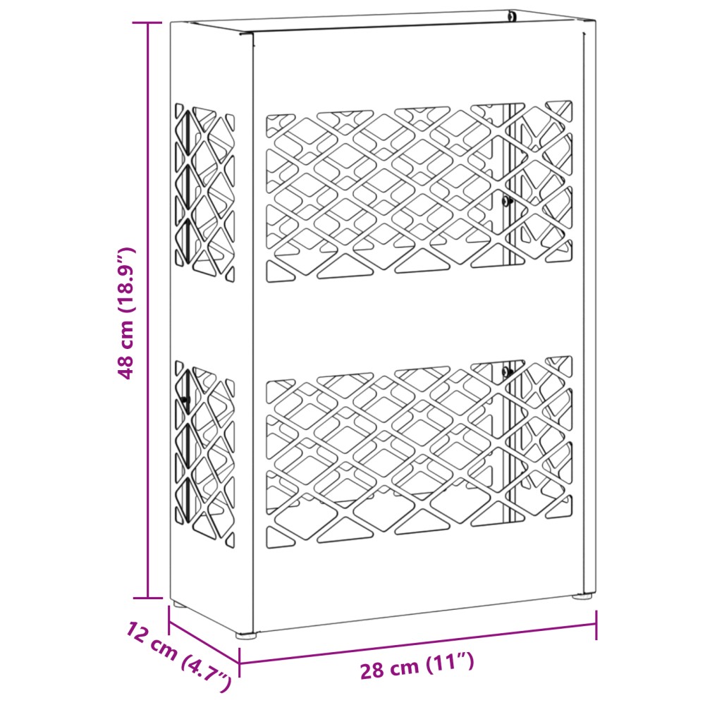 Αυτή η μοντέρνα βάση για ομπρέλες με αποθηκευτικό χώρο είναι η ιδανική λύση για να κρατάς την είσοδό σου τακτοποιημένη και χωρίς ακαταστασία. Με κομψό ορθογώνιο σχήμα, ταιριάζει τέλεια με τη σύγχρονη αισθητική, τονίζοντας την απλότητα και την κομψότητα. Ο στιβαρός σκελετός από ατσάλι προσφέρει υποστήριξη και μακροχρόνια αντοχή, κάνοντάς την κατάλληλη για κάθε εσωτερική είσοδο.