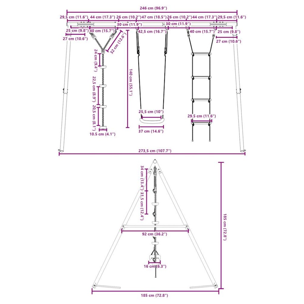 • Κέντρο διασκέδασης: Αυτό το σετ παιδικής κούνιας διαθέτει 3 διαφορετικές επιλογές παιχνιδιού με κάθισμα κούνιας, κούνια με σχοινί δίσκου και σκάλα αναρρίχησης. Έτσι, τα παιδιά μπορούν να κουνηθούν και να σκαρφαλώσουν με την καρδιά τους.