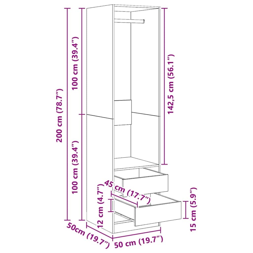 Αυτή η ντουλάπα κατασκευάζεται από σανίδα που εγγυάται τη στιβαρότητα, την ανθεκτικότητα και τη μακρά διάρκεια ζωής της. Περιλαμβάνει 2 συρτάρια και 1 μεγάλο ανοιχτό τμήμα με ράγα, προσφέροντάς σας άφθονο χώρο τόσο για τα μεγαλύτερα ρούχα σας όσο και για άλλα διπλωμένα ρούχα ή αξεσουάρ, όπως πουλόβερ, τζιν, καπέλα, τσάντες χειρός κλπ.