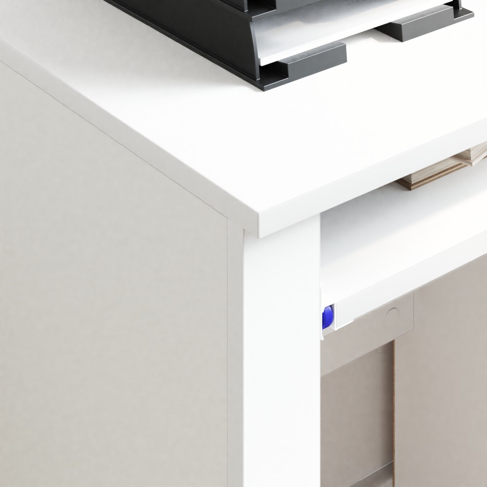 - Λειτουργική κινητικότητα: Με ρόδες, το γραφείο κινείται εύκολα, προσφέροντας ευελιξία. Κλείδωσέ το για σταθερότητα κάθε φορά που το χρησιμοποιείς, κάνοντάς το ιδανικό για διάφορα εργασιακά περιβάλλοντα.