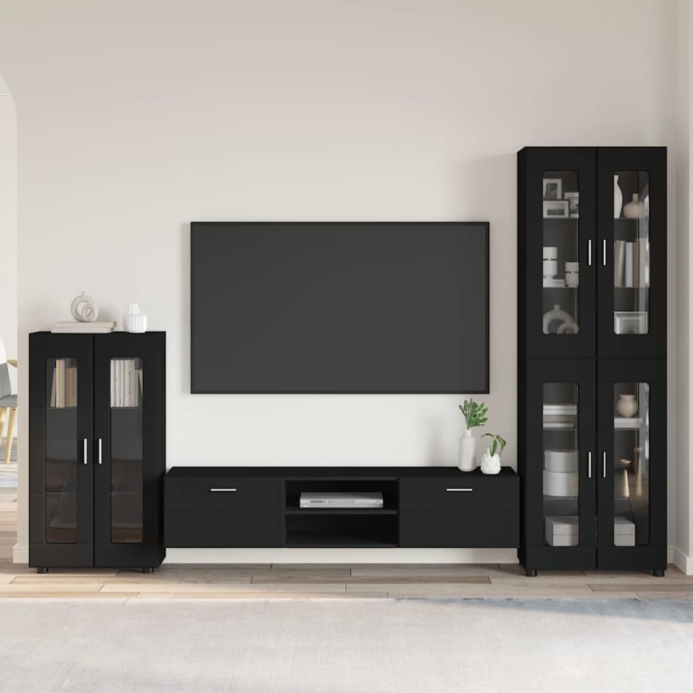 • vidaXL Σετ επίπλου τηλεόρασης FLORIN 3 τεμ. Μαύρο Επεξεργασμένο ξύλο 150x39x30cm