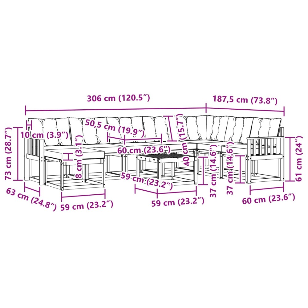 - 6 x Μεσαίος Καναπές: 59 x 63 x 73 εκ (ΜxΠxΥ)