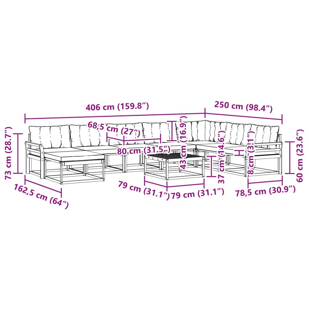 • vidaXL Σειρά Καναπέ Εξωτερικού με μαξιλάρι 9 τεμ. Φυσικό και Μαύρο 79x79x37cm