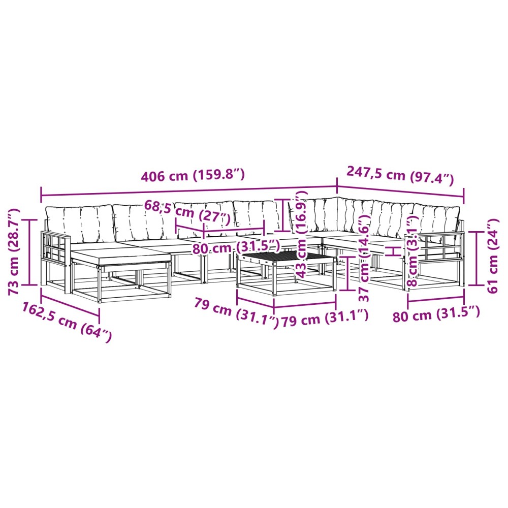 - 6 x Μεσαίος Καναπές: 79 x 83 x 73 εκ (ΜxΠxΥ)