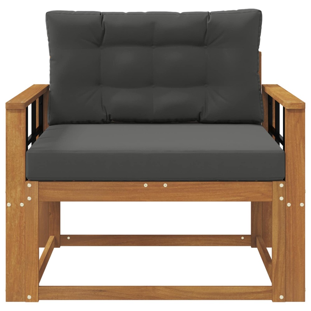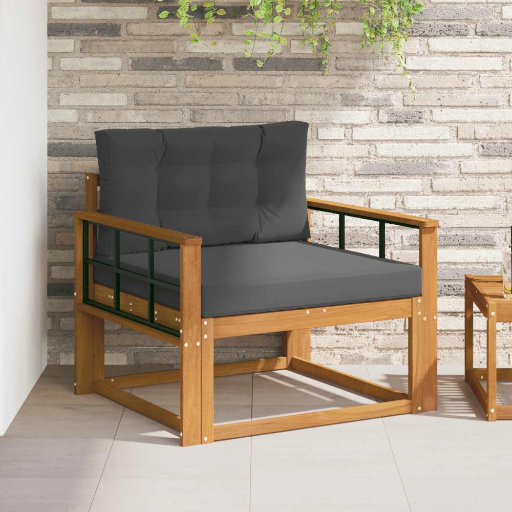 - Μασίφ ξύλο ακακίας Φημισμένος για την αντοχή του, ο καναπές είναι κατασκευασμένος από μασίφ ξύλο ακακίας, συνδυάζοντας ωραία αισθητική με στέρεα δομή. Η φυσική επιφάνεια του ξύλου προσφέρει ζεστασιά και μια ρουστίκ αλλά παράλληλα κομψή αίσθηση στη διακόσμηση σας. Εξασφαλίζει μακροχρόνια διάρκεια με αντοχή στις καιρικές συνθήκες.