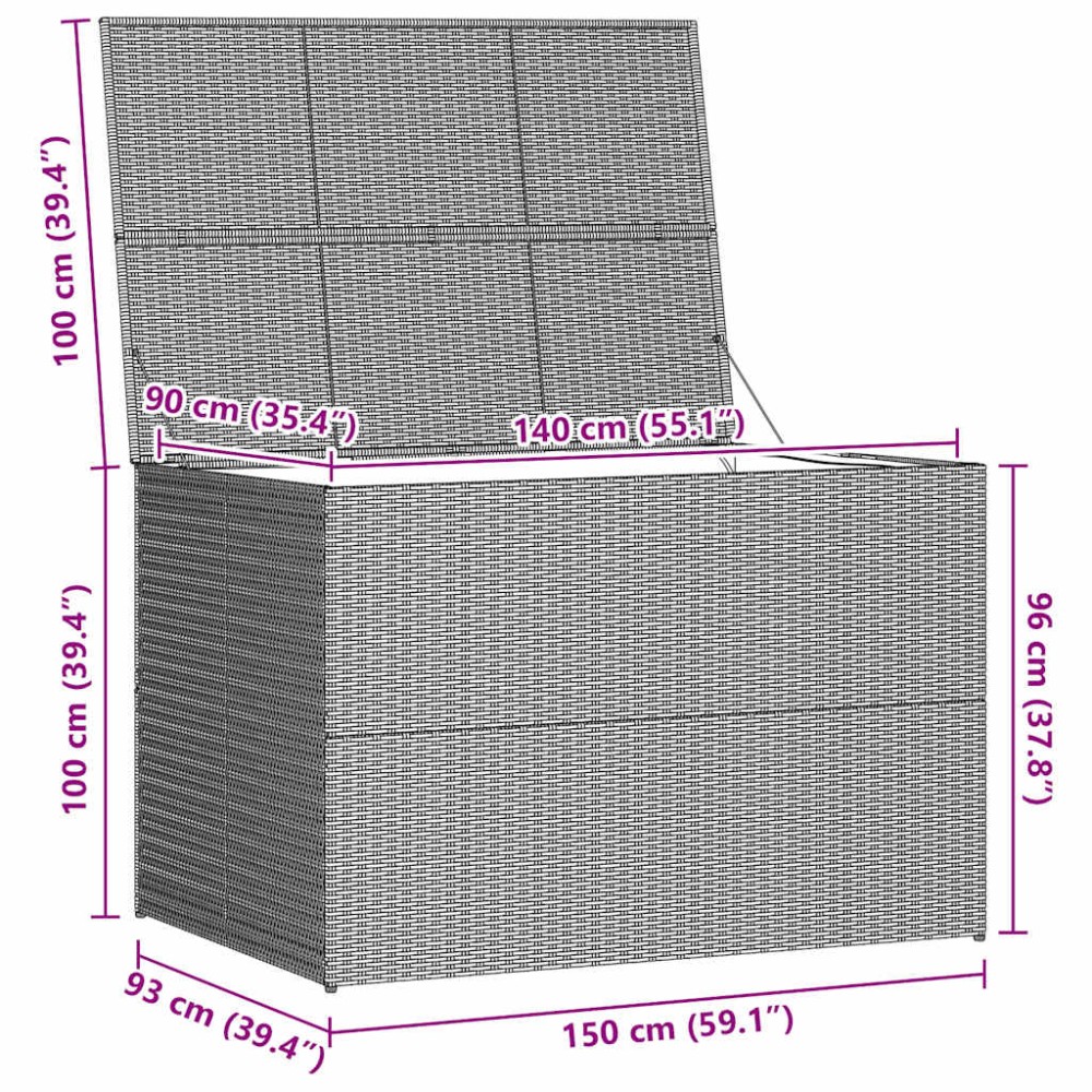 Χάρις στο ανθεκτικό στα καιρικά φαινόμενα ρατάν πολυαιθυλενίου, το κουτί αποθήκευσης καθαρίζεται εύκολα, δε φθείρεται και είναι κατάλληλο για καθημερινή χρήση σε εξωτερικούς και εσωτερικούς χώρους. Το κουτί αποθήκευσης κήπου διαθέτει στιβαρό σκελετό από ατσάλι με ηλεκτροστατική βαφή πούδρας, ο οποίος είναι πολύ ανθεκτικός. Η επένδυση με φερμουάρ θα προστατεύει τα περιεχόμενα του κουτιού από την υγρασία. Το μπαούλο αποθήκευσης έχει μοντέρνο σχεδιασμό που θα ταιριάξει σε οποιονδήποτε εξωτερικό ή εσωτερικό χώρο διαβίωσης.
