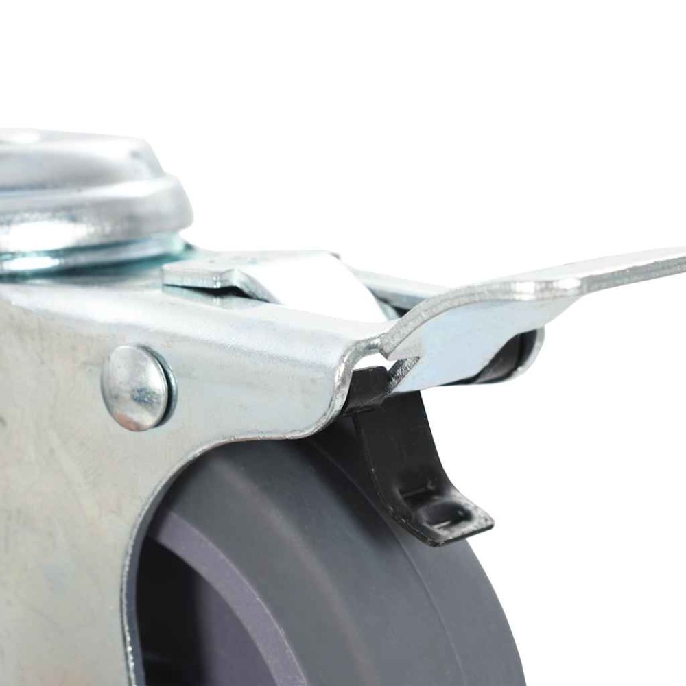 Αυτές οι ρόδες είναι κατασκευασμένες από TPR (θερμοπλαστικό καουτσούκ) το οποίο διακρίνεται από καλή αντοχή σε κραδασμούς και κραδασμούς, επιτρέποντας σε αυτές τις ρόδες να λειτουργούν ομαλά και αθόρυβα. Επιπλέον, οι μαλακές επιφάνειές τους προστατεύουν αποτελεσματικά το πάτωμά σας από γρατσουνιές. Επίσης, το πλαίσιο από σίδηρο με επίστρωση ψευδαργύρου είναι εξαιρετικά ανθεκτικό στη σκουριά και έτσι ενισχύεται η στιβαρότητα και η ανθεκτικότητα της κάθε ρόδας. Αυτά τα ροδάκια είναι εξοπλισμένα με διπλά φρένα για ευελιξία κατά τη χρήση. Κάθε ρόδα έχει μέγιστο ωφέλιμο φορτίο έως 45 κιλά.