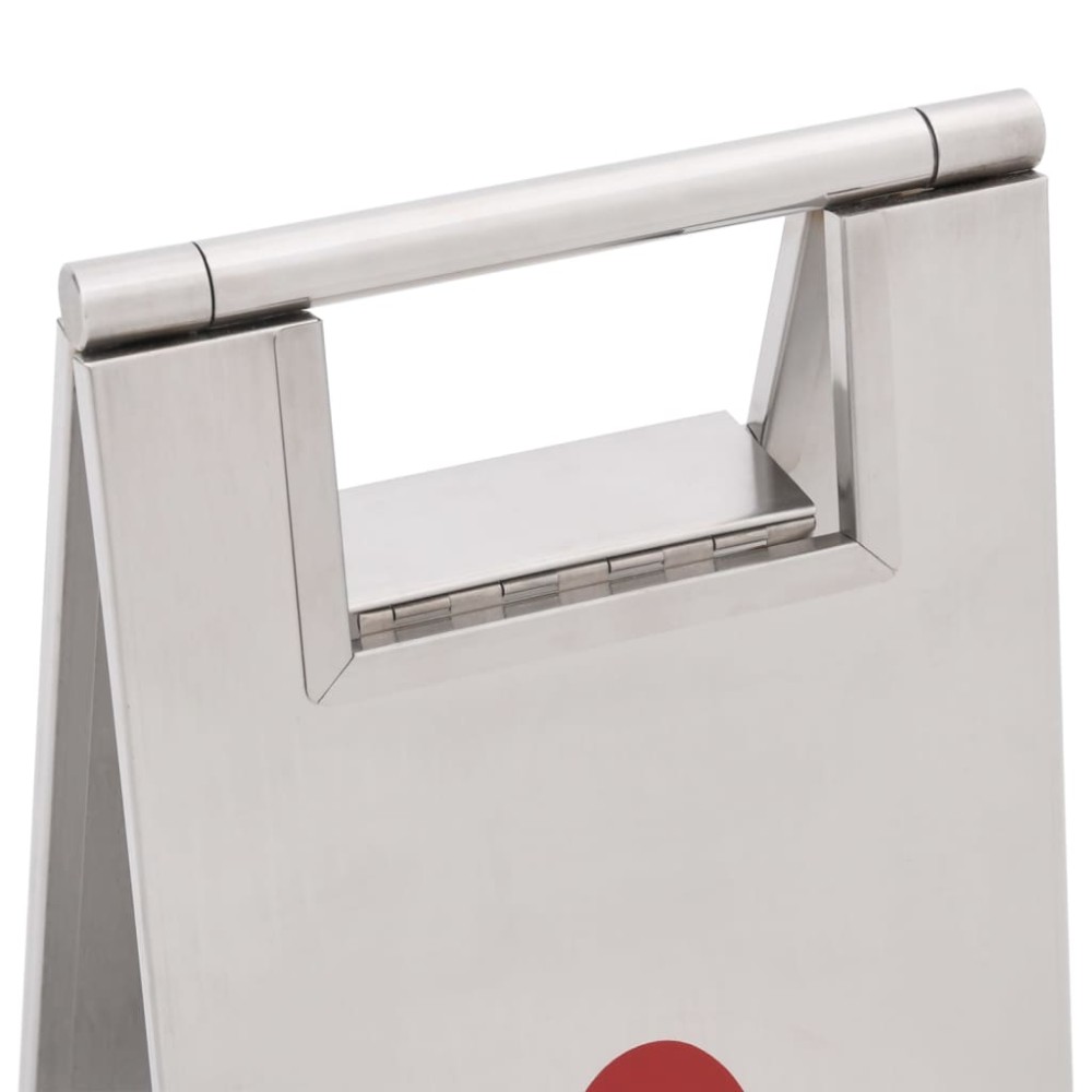 Αυτή η πινακίδα είναι κατασκευασμένη από ανοξείδωτο ατσάλι, το οποίο είναι ανθεκτικό στη σκουριά και καθαρίζεται εύκολα. Χωράνε δύο σήματα κινδύνου σε κάθε πλευρά. Η προειδοποιητική πινακίδα διαθέτει λαβή για εύκολη μεταφορά. Όταν δεν χρησιμοποιείται, αυτή η πινακίδα μπορεί να διπλωθεί για εύκολη αποθήκευση.