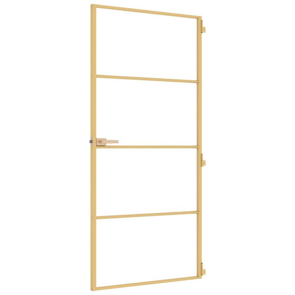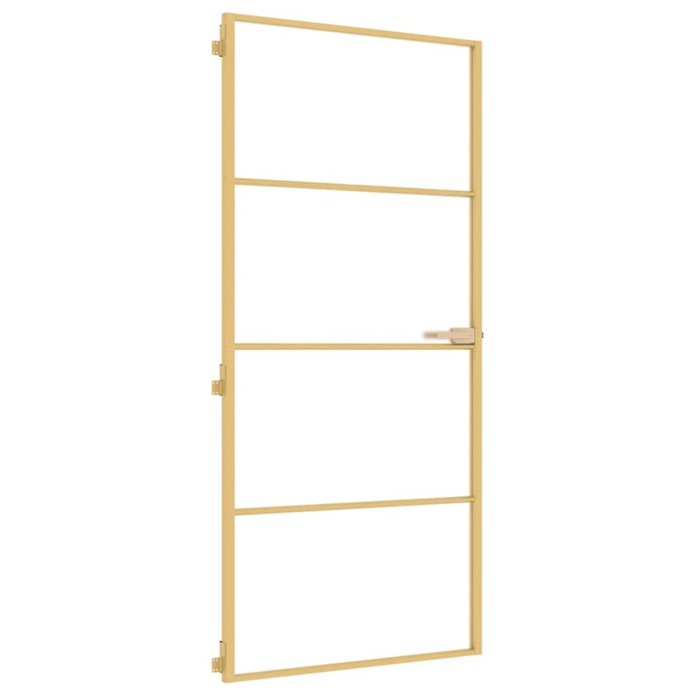 vidaXL Εσωτερική Πόρτα Χρυσή 93 x 201,5 εκ. Ψημένο Γυαλί & Αλουμίνιο
