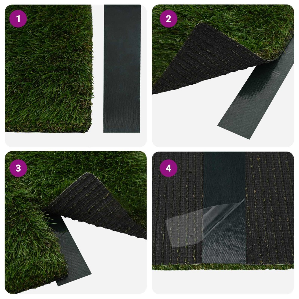 - Διπλής όψης κόλλα: Ισχυρή σύνδεση που κρατάει τα κομμάτια του τεχνητού χλοοτάπητα στην θέση τους, αποφεύγοντας κενά και κινήσεις, έτοιμο να αντέξει ακόμα και σε πολυσύχναστα μέρη ή δύσκολες καιρικές συνθήκες.