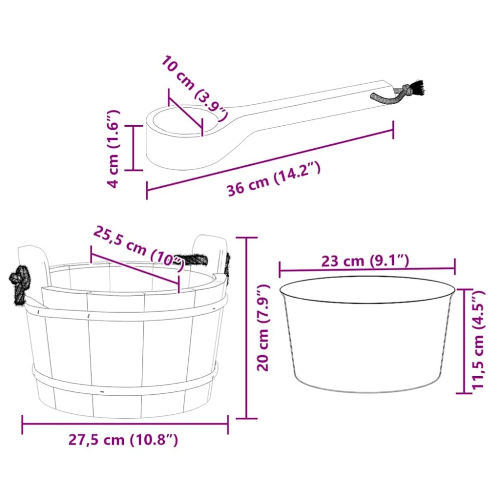• vidaXL Κουβάς Σάουνας 2 pcs Καφέ Μασίφ Ξύλο Πεύκου και Κάνναβη
