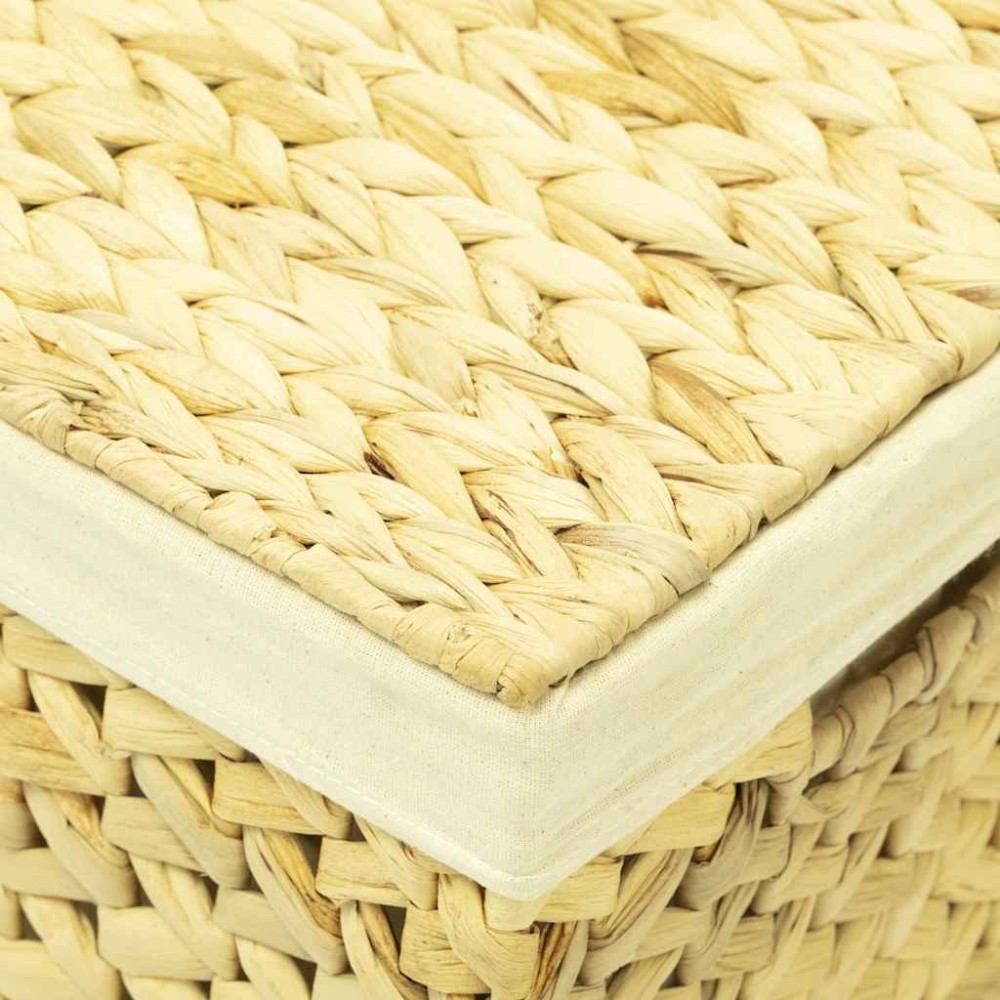 Κατασκευασμένο από υάκινθο νερού με ισχυρό σιδερένιο σκελετό, το καλάθι ρούχων, τα ορθογώνια καλάθια και ο κάδος απορριμμάτων είναι στιβαρά και ανθεκτικά. Οι μεγάλες θήκες παρέχουν άφθονο χώρο για τα ρούχα σας, την καθημερινή οργάνωση και τα σκουπίδια. Το ελκυστικό πλεκτό στιλ ενισχύει τη ρουστίκ γοητεία του σετ.