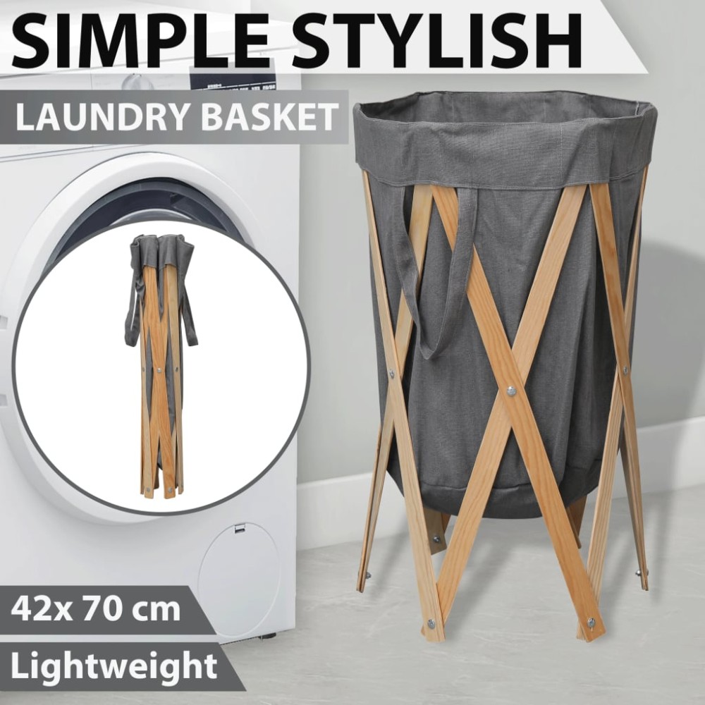 Το καλάθι για τα άπλυτα διαθέτει ισχυρό και σταθερό ξύλινο σκελετό με υφασμάτινη θήκη. Η υφασμάτινη θήκη είναι ελαφριά, δε φθείρεται, είναι αφαιρούμενη και πλένεται εύκολα. Ο κάδος μπορεί να αναδιπλωθεί εύκολα για συμπαγή αποθήκευση όταν δε χρησιμοποιείται.