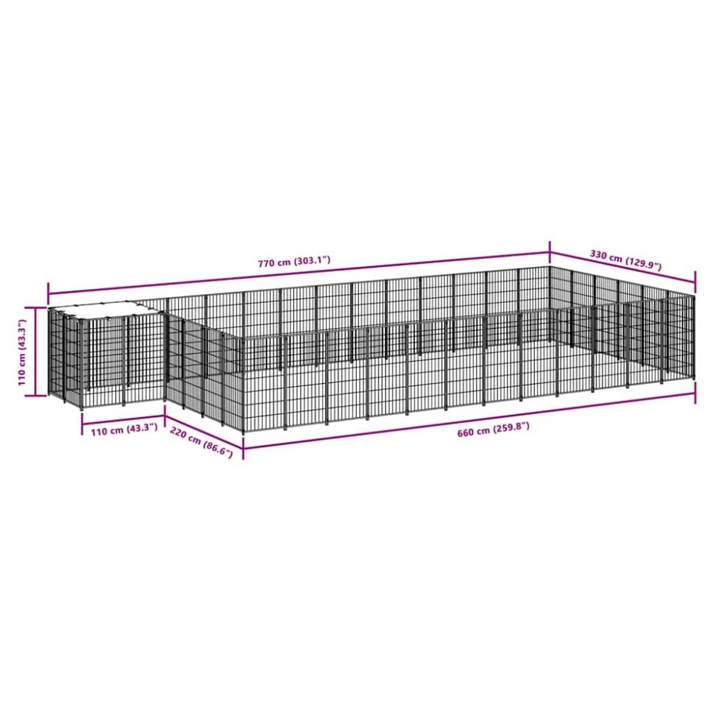 Το μεγάλο κλουβί για σκύλους παρέχει άφθονο χώρο άσκησης, ενώ το τοίχωμα από ατσάλινο πλέγμα βοηθά στην αποφυγή ατυχημάτων, ενώ παράλληλα επιτρέπει τον αερισμό. Χάρη στην στιβαρή κατασκευή από χάλυβα, αυτό το κλουβί για κατοικίδια είναι ανθεκτικό και κατασκευασμένο για να διαρκεί. Διαθέτει στέγη από πολυαιθυλένιο που είναι ανθεκτική στο νερό και στην υπεριώδη ακτινοβολία. Επιπλέον, η πόρτα διαθέτει κλειδωμένο μάνδαλο που εξασφαλίζει επιπλέον ασφάλεια για τους σκύλους σας.